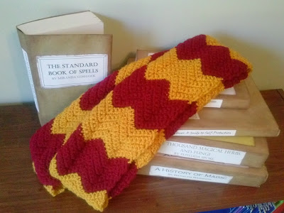 As I mentioned in the last post, the yarn was $2.99 for each color (Burgundy and Gold). So I got two sweet HP scarves for only about $6!! Holler!!